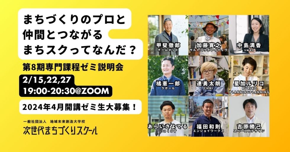 プロと仲間と❝つながる❞まちづくりスクールって何?-第8期専門課程ゼミ無料オンライン説明会-