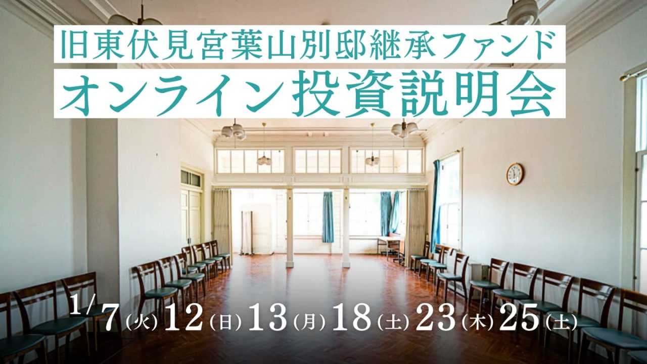 【第2弾】2025年「旧東伏見宮葉山別邸継承ファンド」説明会を実施します!