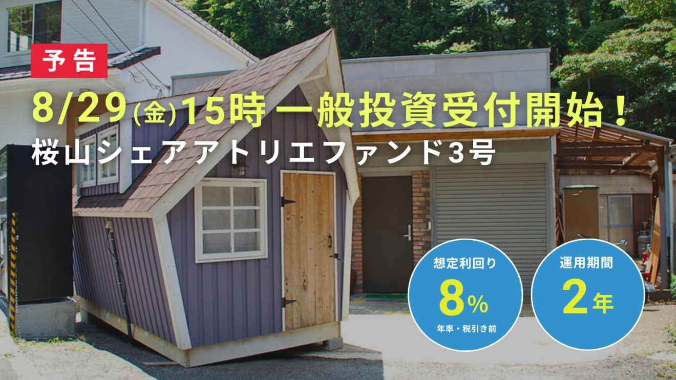 【予告|想定利回り8%】 平均稼働率95%の高稼働実績 後継ファンド「桜山シェアアトリエファンド3号」